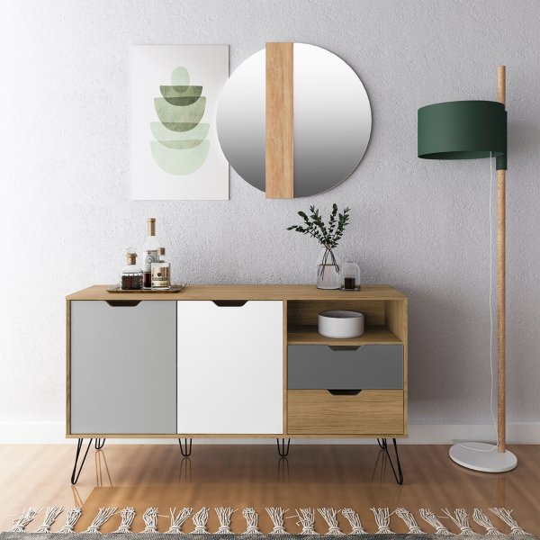 Buffet Estocolmo Carvalho/Grafite: Seu Lar Organizado com um Toque de Elegância