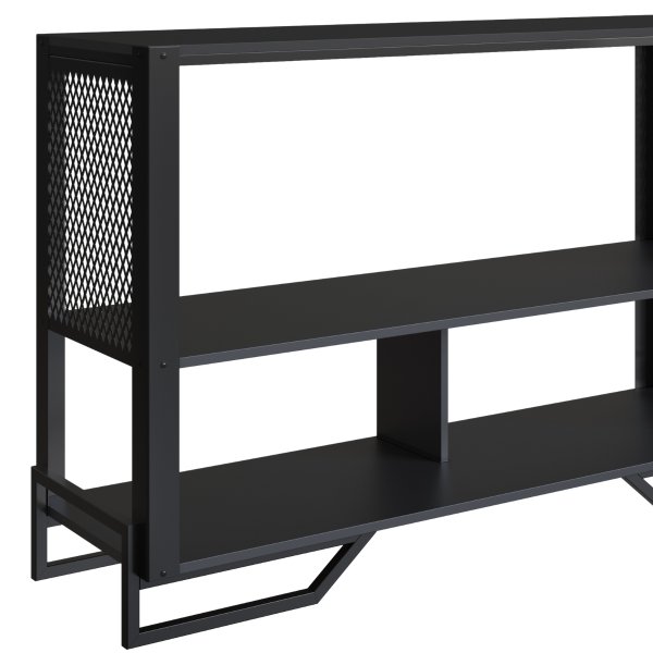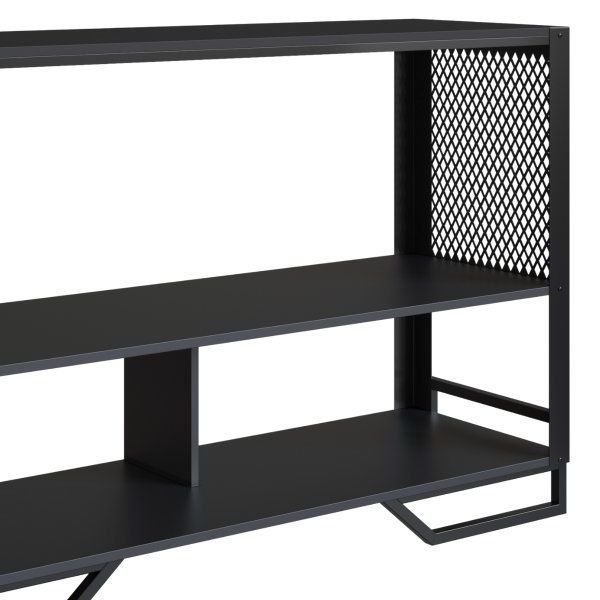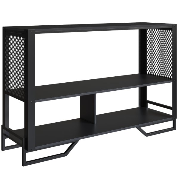 Com certeza! Totalmente na cor Preto com acabamento fosco na estrutura metálica e laterais em tela, este aparador é a personificação do estilo industrial urbano. Ele adiciona um toque de sofisticação e personalidade ao seu hall de entrada, sala de estar ou jantar.