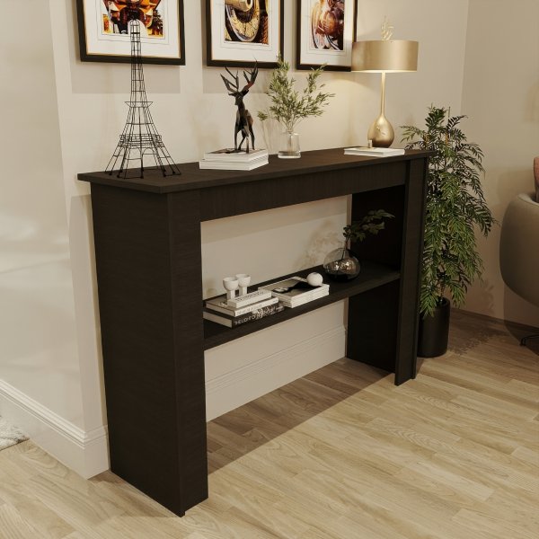 Com seus 108cm de largura, o Aparador Veneza Preto exibe com elegância suas peças decorativas favoritas, desde livros e esculturas até vasos de plantas. Seus 76,5cm de altura o tornam um ponto de destaque na decoração, enquanto seus 30cm de profundidade oferecem praticidade sem ocupar muito espaço. A prateleira interna, com 100cm x 25cm, adiciona ainda mais espaço para organizar seus objetos com discrição.