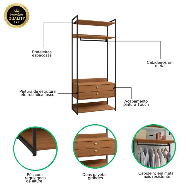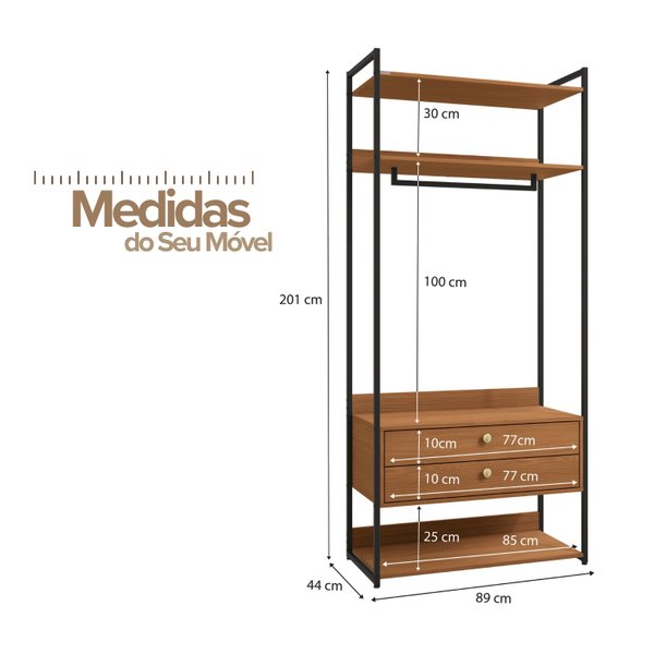 - Produto: Armário Alto Closet Aberto com 2 Gavetas e Cabideiro