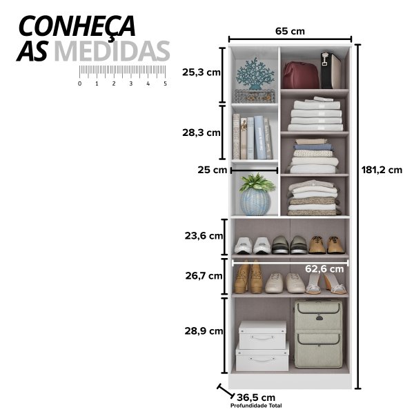 - Dimensões (A x L x P): 181,2 cm x 65 cm x 36,5 cm
