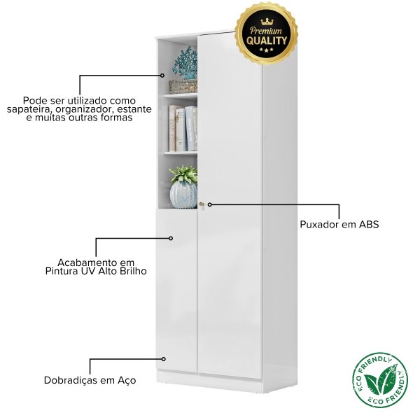 Armário Multiuso Sapateira com 2 Portas Lince - Branco: Design Minimalista, Máxima Organização