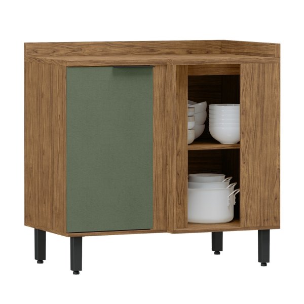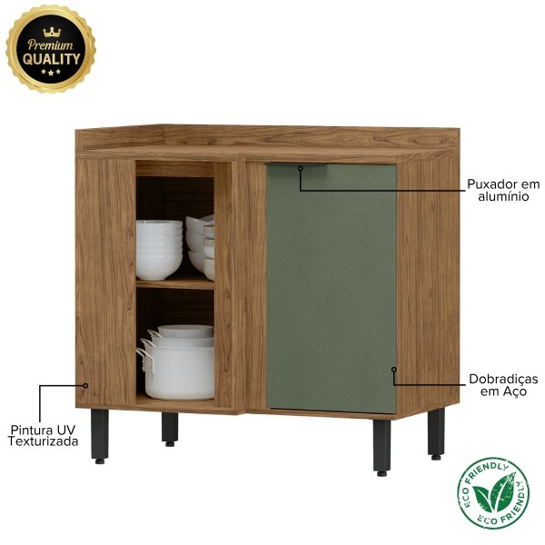 Balcão de Canto Reto 1 Porta Toscana - Freijó/Jade: Design e Cor Para um Canto Cheio de Vida