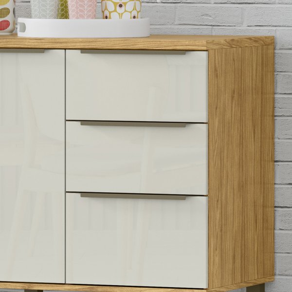 - Gavetas com Suavidade: Três gavetas com corrediças telescópicas garantem abertura total e silenciosa.