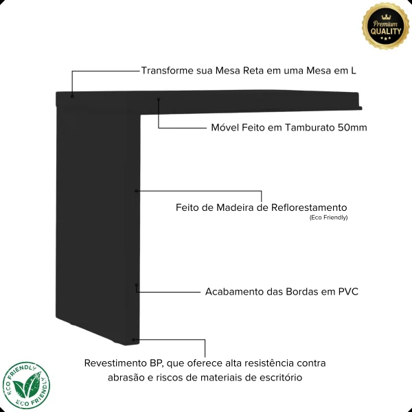 - Transforme sua Mesa em uma Estação Executiva: Converta sua mesa simples em um layout em "L" de alto padrão instantaneamente.