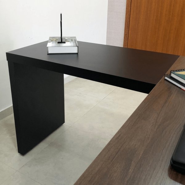 Sim. O acabamento utiliza revestimento melamínico BP de baixa pressão, que oferece alta resistência contra abrasão e riscos de materiais de escritório. Essa tecnologia preserva a profundidade da cor preta, garantindo que a sobriedade e a elegância do seu ambiente executivo permaneçam impecáveis por anos.