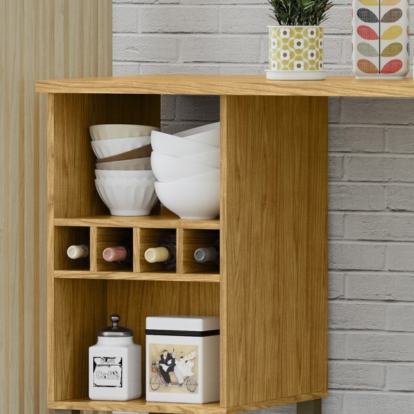 - Design Multifuncional: Integra adega para 4 garrafas e nichos abertos, ideal para organização e decoração.