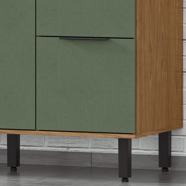 Este balcão é a resposta. Ele combina a funcionalidade de um módulo para pia com a beleza da porta na cor Jade, um tom que traz frescor e originalidade para a decoração. A estrutura amadeirada Freijó completa o visual, criando um ponto focal de design que é ao mesmo tempo elegante e convidativo, fugindo do tradicional.