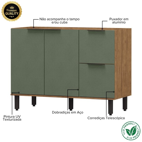 Balcão para Pia 120cm Toscana - Freijó/Jade: Um Toque de Cor e Frescor no Coração da Casa
