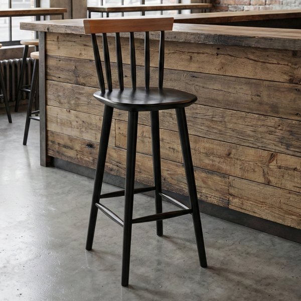 Banqueta Alta Milena Preto/Natural: Elegância e Contraste para Ambientes Modernos