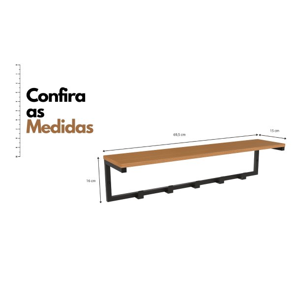 - Design Compacto de 70cm: Com largura de 69,5cm e apenas 15cm de profundidade, o cabideiro aproveita espaços aéreos que seriam desperdiçados em corredores estreitos. É a escolha inteligente para liberar a circulação em apartamentos, mantendo itens essenciais sempre à mão.