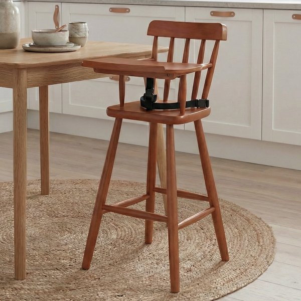 Cadeira de Alimentação Infantil de Madeira na cor Nozes e Assento em MDF: Elegância para os Momentos em Família