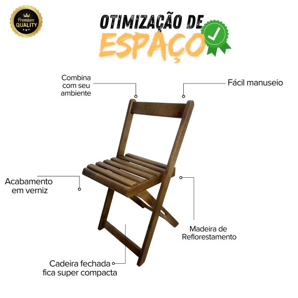 Adquira agora a Cadeira Dobrável de Madeira Imbuia e leve para casa a solução perfeita de praticidade, conforto e elegância que seu lar merece!
