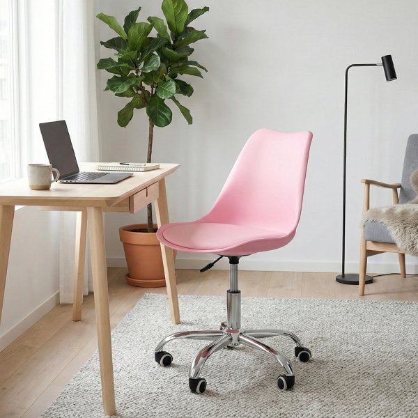 Cadeira Secretária Com Base Giratória Estofada Ícaro - Rosa: Charme e Conforto Para o Seu Cantinho