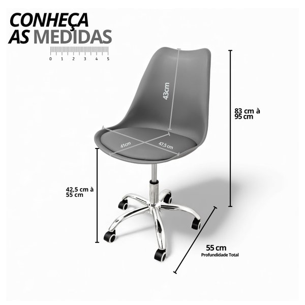- Ajuste-se Perfeitamente: Regule a altura do assento (de 42cm a 50cm) com o sistema a gás de alta precisão.
