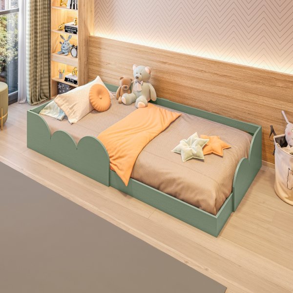 Cama Infantil Montessoriana Solteiro Cloud - Verde: O Toque de Vitalidade e Calma para um Quarto de Aventura.