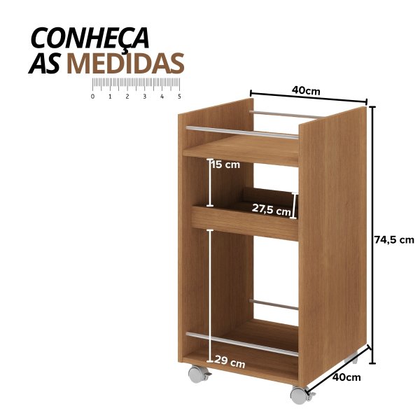- Compacto e Versátil: Com 40cm de largura, é perfeito para otimizar ambientes pequenos, servindo também como mesinha de café ou apoio lateral.