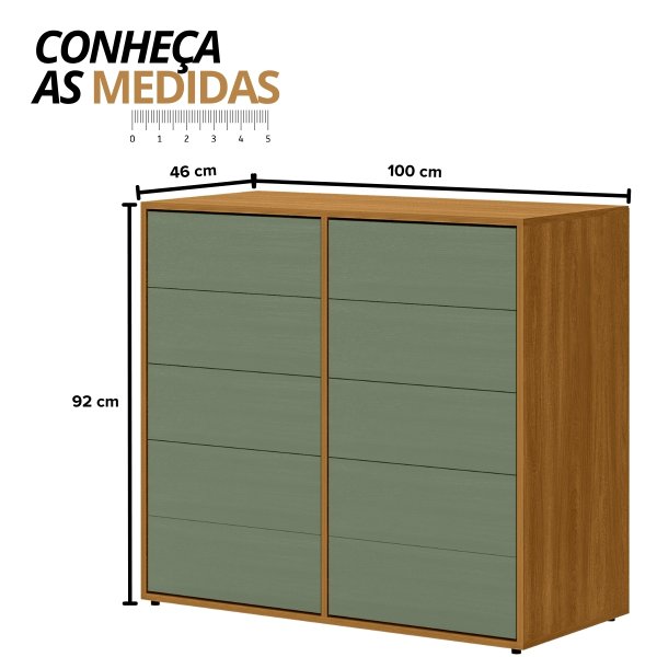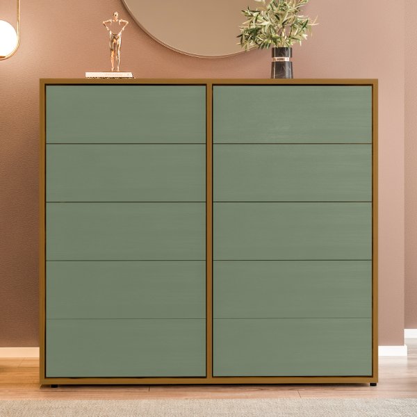 Cômoda para Quarto 10 Gavetas Melinda - Freijó/Verde: A Combinação Surpreendente que Traz Calma e Originalidade ao seu Ambiente.