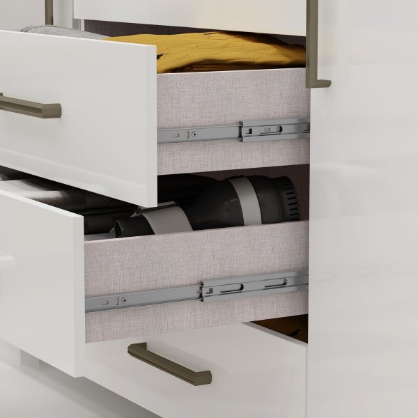Cômoda Oslo 4 Gavetas Branca: O Brilho e a Ordem que seu Quarto Merece