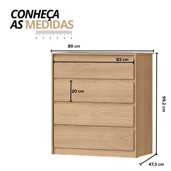 Perfeitamente. São quatro compartimentos espaçosos para você setorizar suas roupas: uma gaveta para camisetas, outra para malhas, outra para roupas íntimas... Cada uma suporta 4 kg e, com as corrediças telescópicas, você acessa 100% do espaço interno. É a organização inteligente que a Dkadi Decor traz para sua rotina.