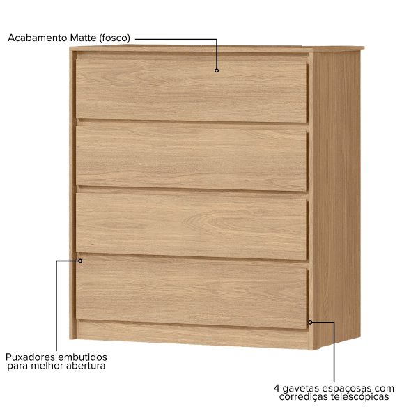 Cômoda 4 Gavetas Carla - Castanho: O Conforto do Acabamento Fosco e a Ordem que Você Precisa