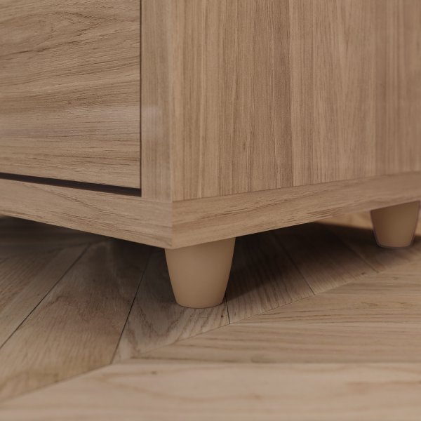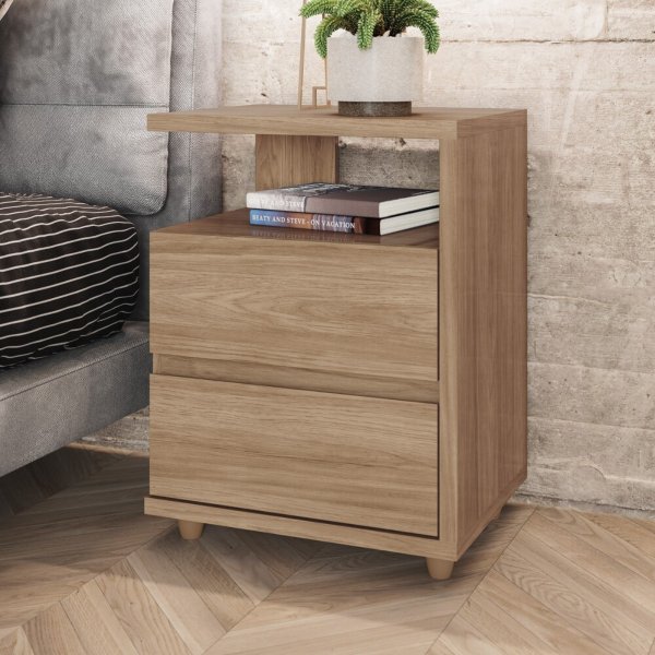 - Mantenha Tudo no Lugar: Duas gavetas espaçosas com pega soft (design limpo sem puxadores) organizam seus pertences sem poluir o visual frontal do móvel.