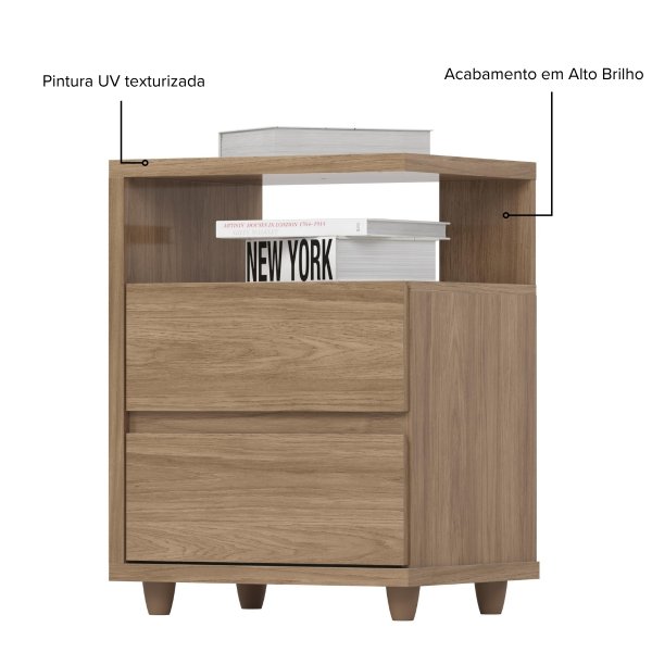 Kit 2 Mesas de Cabeceira Campeche Jequitibá Brilho: Destaque e Luminosidade para Quartos de Personalidade