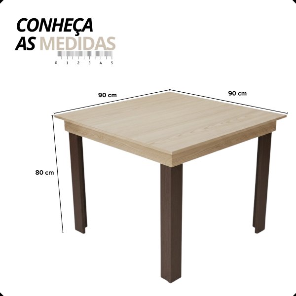 - Dimensões da Mesa: 90 × 90 × 80 cm