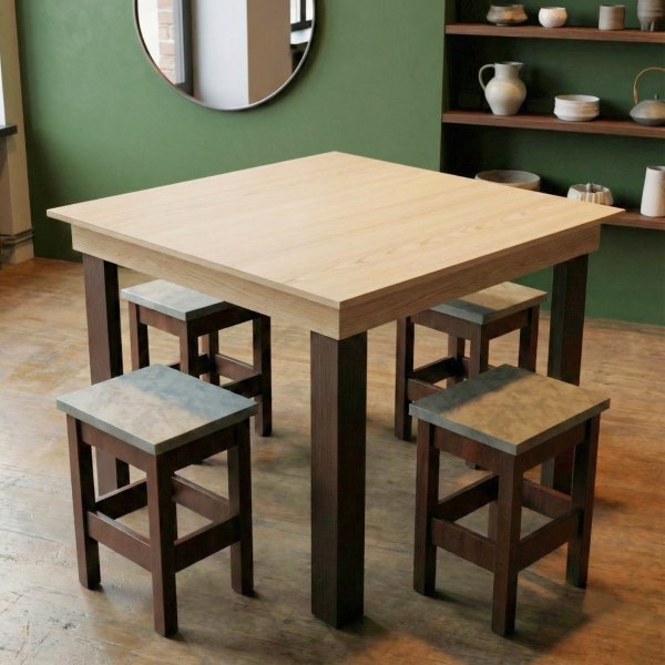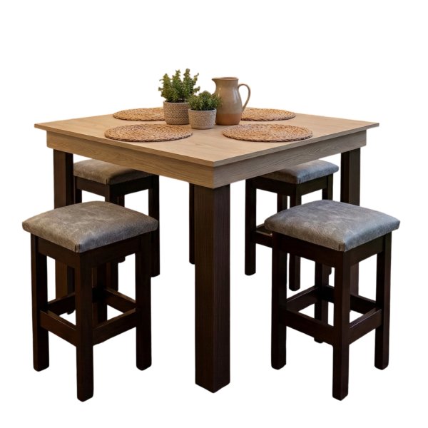 Kit Mesa Prime 90×90 com 4 Banquetas: Harmonia e Conforto para o Centro da Sua Casa