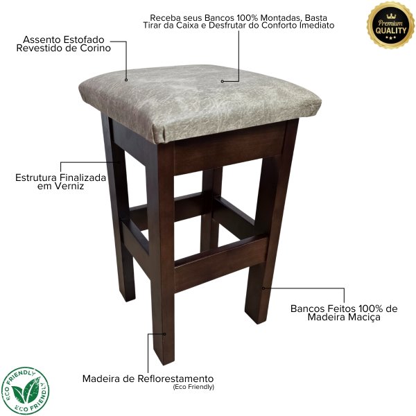 - Dimensões das Banquetas: 49 × 29 × 29 cm