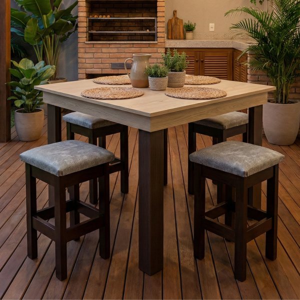 - Produto: Kit Mesa Prime 90×90 + 4 Banquetas Baixas