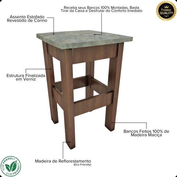 - Dimensões das Banquetas: 49 × 29 × 29 cm