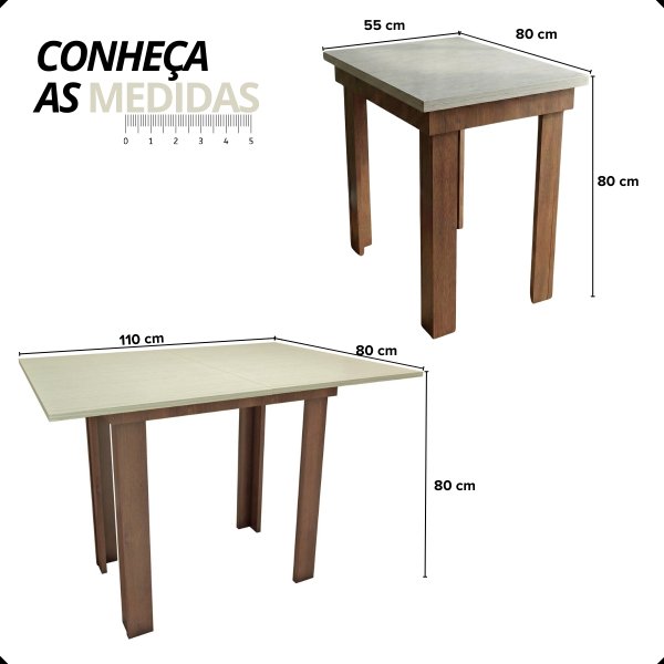 - Dimensões da Mesa (Fechada): 80 × 55 × 80 cm