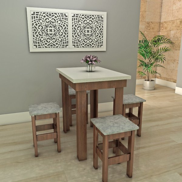 - Kit pronto para uso imediato: As quatro banquetas chegam montadas, enquanto a mesa exige apenas a fixação simples dos pés, permitindo uso no mesmo dia.