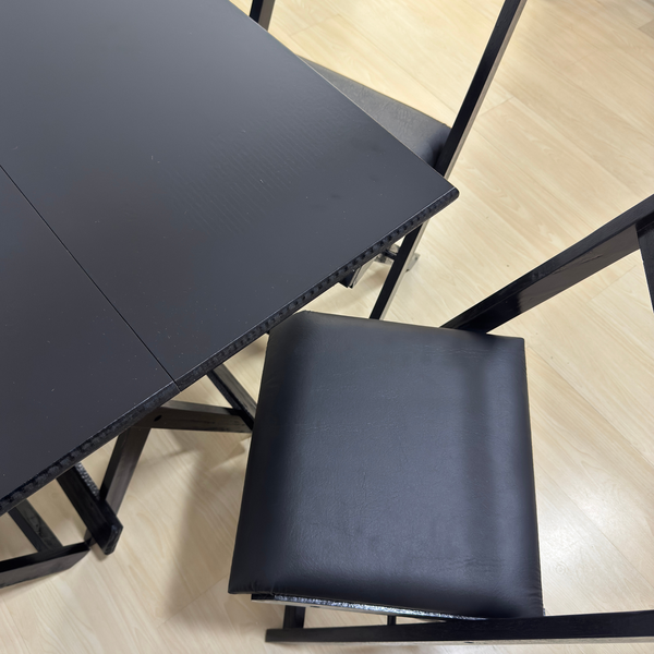 Conjunto Mesa Dobrável Preto com 4 Cadeiras Estofado Preto: Design Minimalista, Máxima Funcionalidade