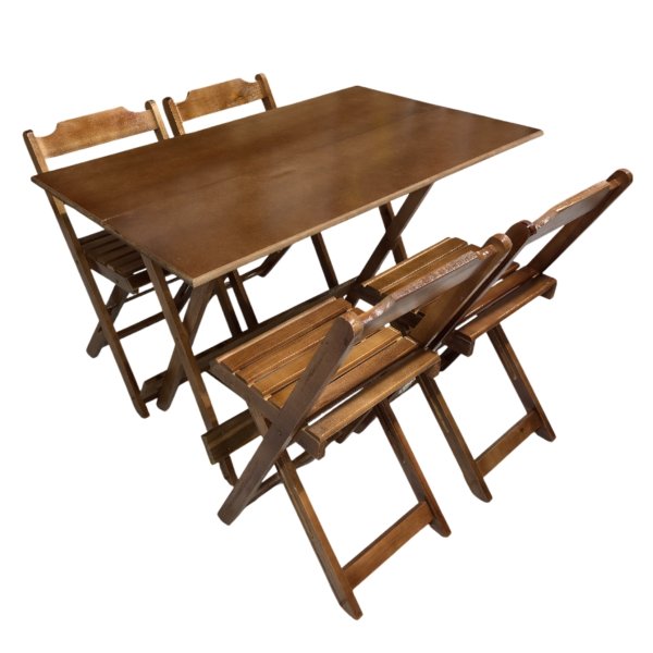 Conjunto Mesa Dobrável 120x70 com 4 Cadeiras - Imbuia: O Aconchego da Madeira para Reunir a Família.