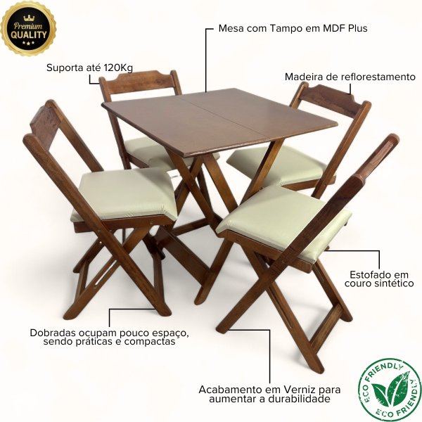 - Diferencial: Produto totalmente dobrável com 4 cadeiras com assento em courino.