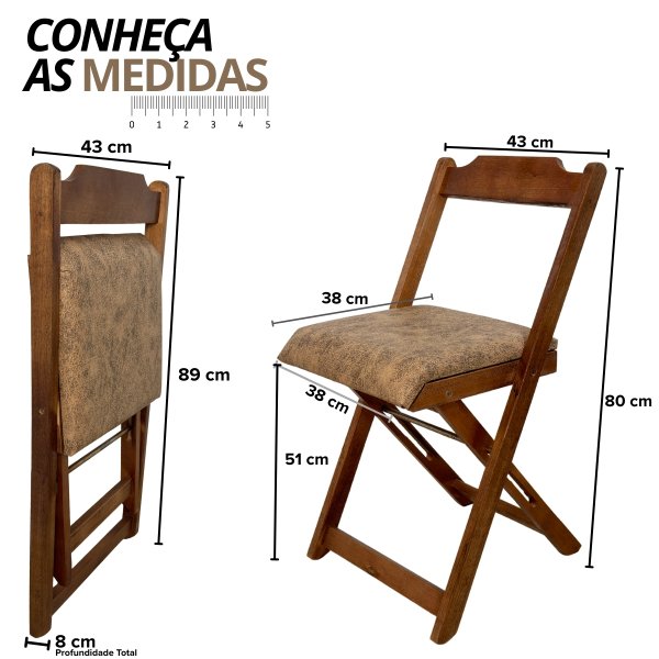 - Diferencial: Produto totalmente dobrável com 4 cadeiras com assento em courino.