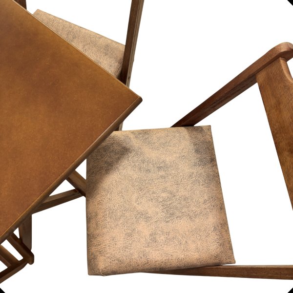 - Conforto Garantido: Cadeiras com assentos estofados em courino que proporcionam conforto para refeições e longas conversas.