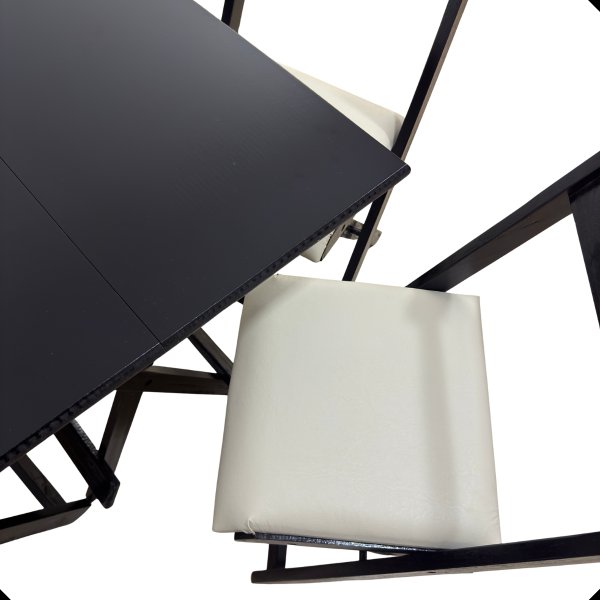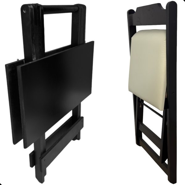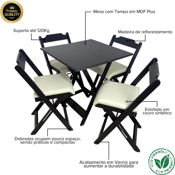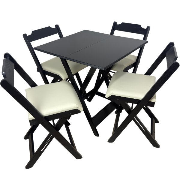 O grande diferencial desse conjunto é a praticidade. A mesa dobrável facilita muito na hora de organizar o ambiente, já que você pode abrir e fechar rapidinho, liberando espaço quando precisar. Perfeito para apartamentos, varandas, cozinhas pequenas ou até para quem gosta de mudar o layout da casa com frequência.