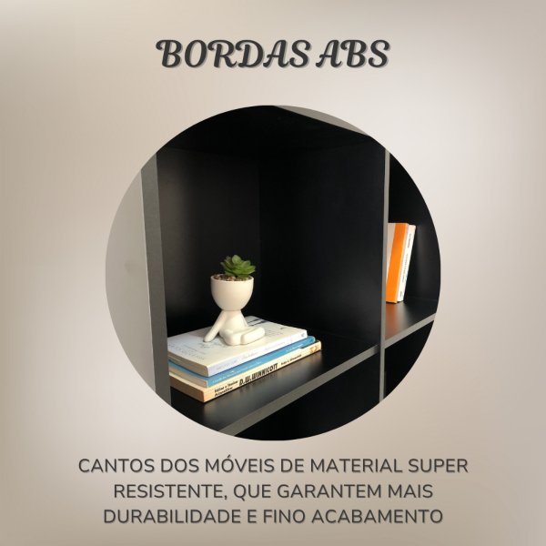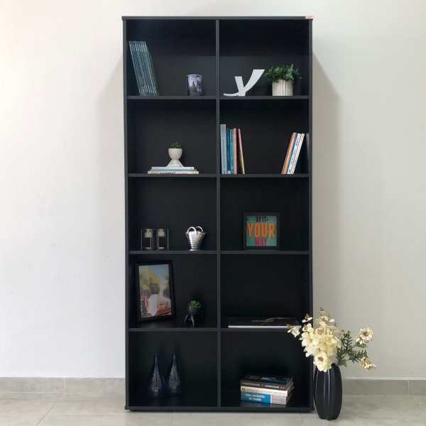 Suas oito prateleiras espaçosas acomodam seus livros, objetos decorativos, plantas e equipamentos eletrônicos com praticidade e estilo, criando um visual moderno e convidativo, perfeito para um loft urbano ou um escritório cheio de personalidade. A estrutura em MDP de 15mm garante resistência e durabilidade, enquanto o revestimento em *BP preto confere um acabamento impecável, fácil de limpar e resistente ao dia a dia. As bordas em PVC aumentam a proteção contra umidade e atrito, para que sua estante permaneça impecável por muito mais tempo.