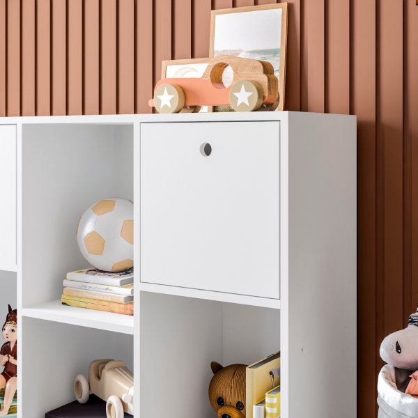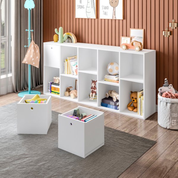As três caixas inclusas funcionam como gavetas lúdicas e práticas. Elas se encaixam perfeitamente nos nichos, permitindo que você guarde itens menores e mantenha a desordem longe da vista, criando um visual mais limpo. Por serem removíveis, você pode levá-las para onde precisar. Esta solução de organização é um diferencial que a Dkadi Decor oferece para facilitar sua rotina.
