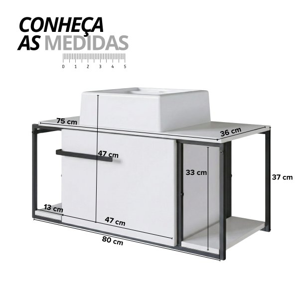 - Altura Total: 59 cm (49cm Gabinete + 10cm Cuba)