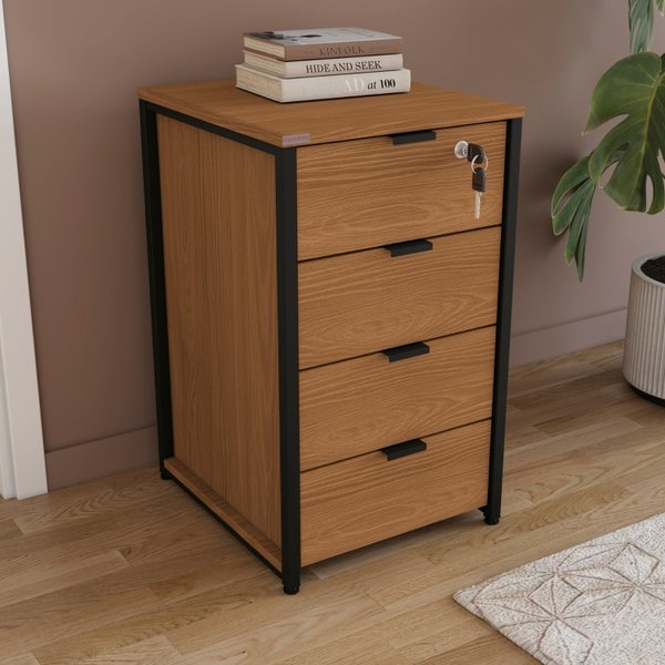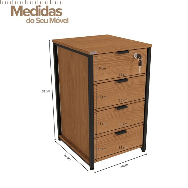 Gaveteiro Com 4 Gavetas Canela e Preto: O Design Industrial para seu Escritório