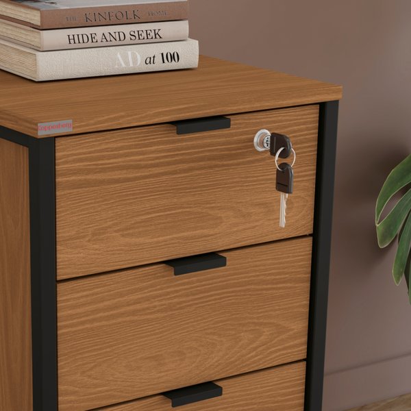 Adicione elegância industrial e organização segura ao seu escritório. Peça o seu Gaveteiro Canela e Preto.