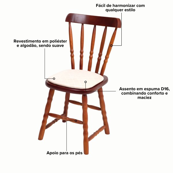 - Pés: 4 pés em Madeira Maciça