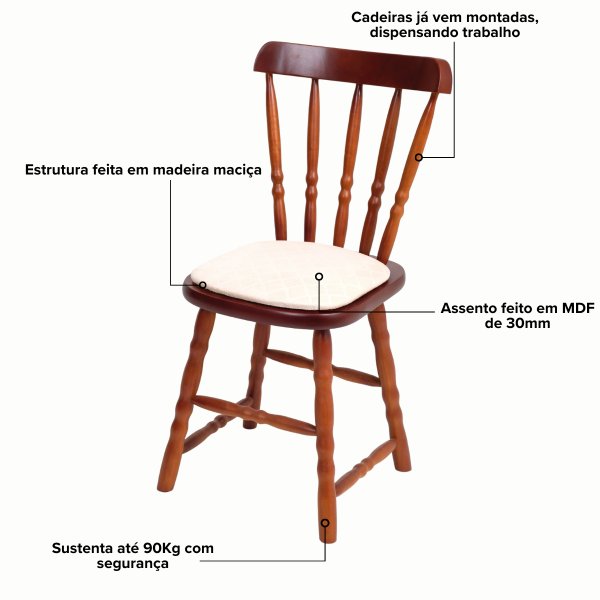 Invista no requinte que perdura. Leve o Kit de Cadeiras Imbuia e Bege Acetinado para casa e eleve o nível da sua sala de jantar!