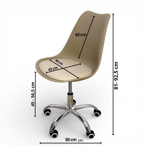 | Altura do Assento | 45 cm (mínima) a 56,5 cm (máxima) |