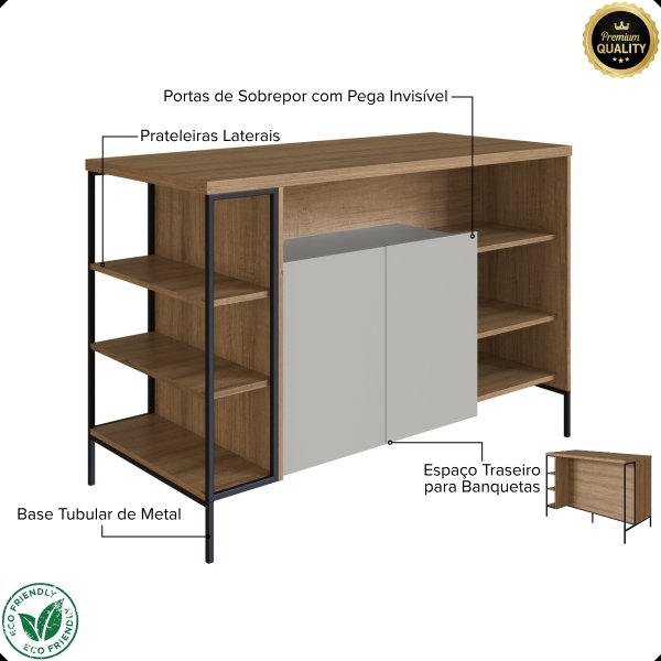 - Organize sua Cozinha: A bancada gourmet conta com um armário de 2 portas e 6 nichos laterais para utensílios e mantimentos.