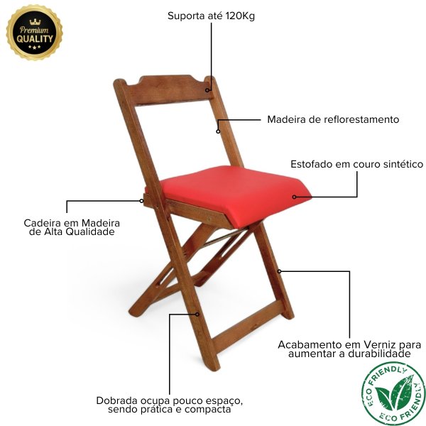 Esta cadeira dobrável é uma excelente opção para quem busca praticidade e conforto em um só produto. Com sua estrutura em madeira de alta qualidade, ela oferece durabilidade e resistência para uso frequente em ambientes comerciais ou residenciais. O estofado na cor vermelha traz um toque de elegância e sofisticação, combinando perfeitamente com qualquer tipo de decoração. Além disso, a funcionalidade dobrável da cadeira permite que ela seja facilmente armazenada e transportada para onde for necessário. Seja para um evento, um jantar em família ou uma reunião de amigos, esta cadeira é uma escolha prática e confortável.
